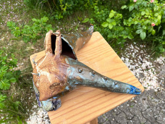 Injured Triffid Taking a Rest, Stoneware & Wood, 2025.